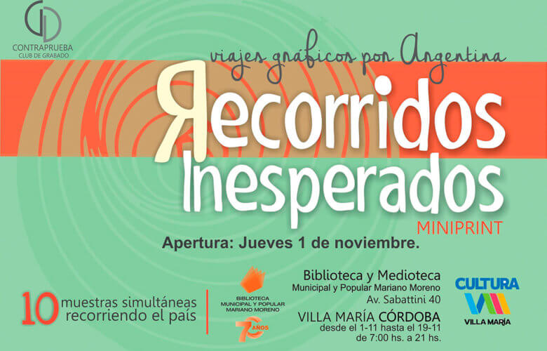 Desde el jueves pasado 1 de noviembre, hasta el lunes 19 se encuentra en exposición en la Medioteca Municipal de Villa María la muestra miniprint Recorridos Inesperados, viajes gráficos por Argentina organizado por Contraprueba Club de Grabado.