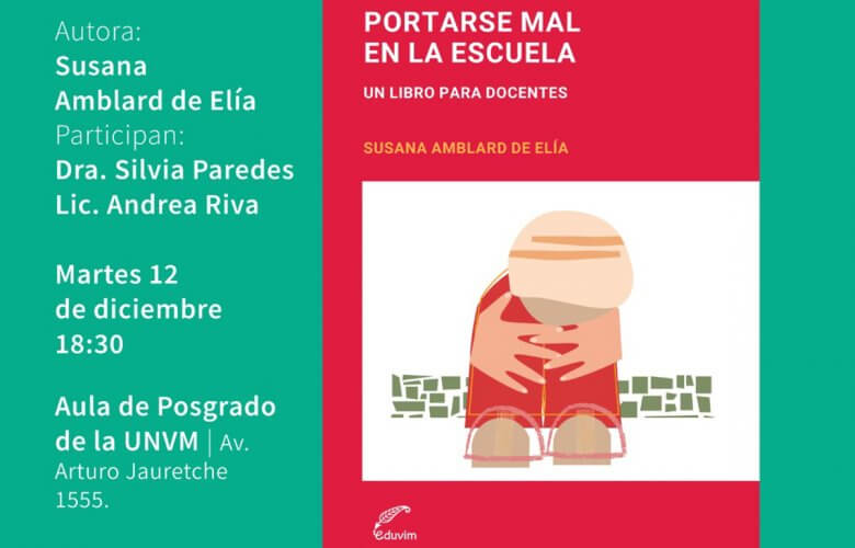 Desde el Instituto de Ciencias Humanas y la Editorial Universitaria de la Universidad Nacional de Villa María (EDUVIM) realizarán la presentación del libro “Portarse mal en la escuela. Un libro para docentes” de Susana Amblard de Elia, el próximo martes 12 de diciembre a las 18:30 hs en el aula de posgrado del Campus Universitario (Arturo Jauretche 1555).