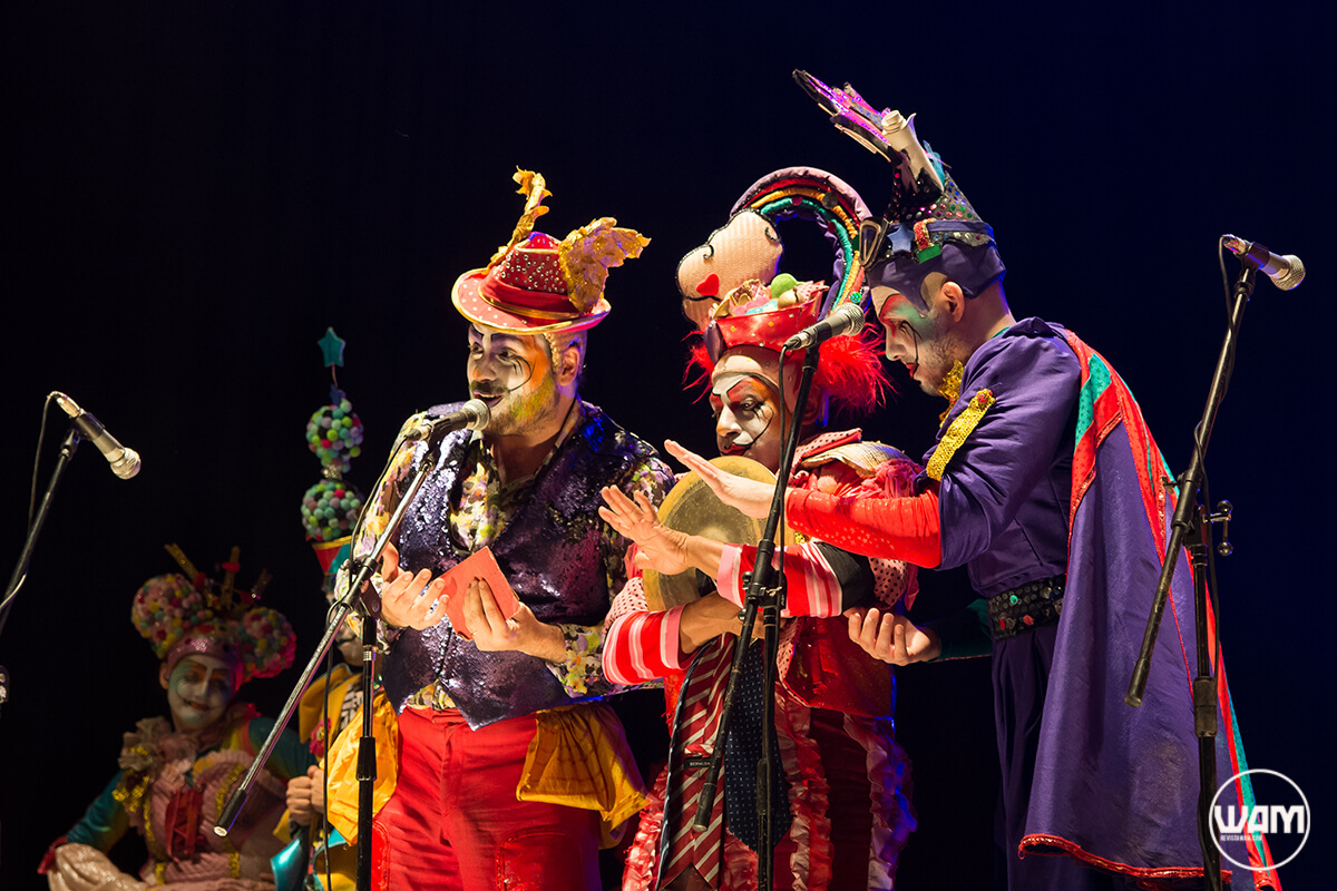 El espectáculo presentó el relato de una agrupación de personas que intenta, con delirio y decadencia, defender causas y utopías que ya nadie más defiende.