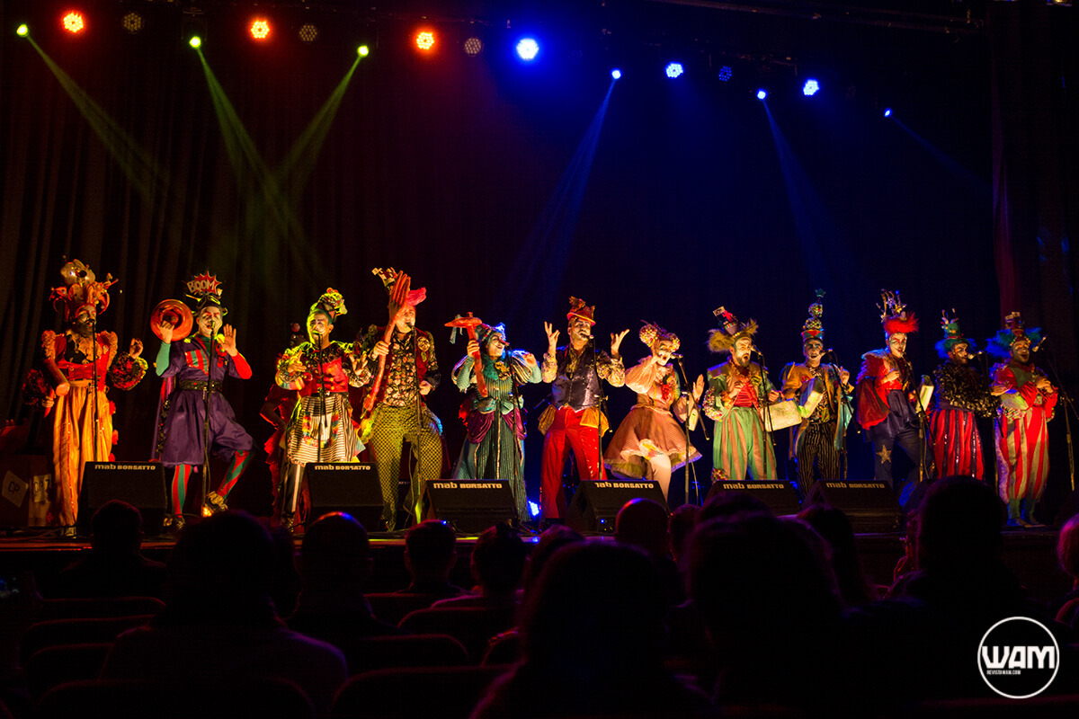 Al finalizar, la murga se bajó del escenario, bailo entre los espectadores quienes acompañaron con aplausos, finalizando el espectáculo en el hall de ingreso del teatro.