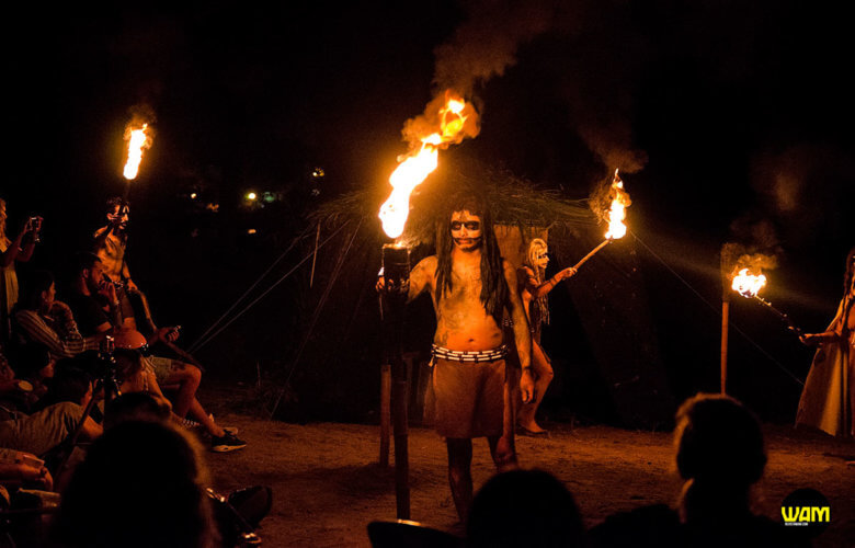 Todo es natural en esta sala de teatro temporal, lo cual responde al concepto de realidad buscado y a la especie de viaje en el tiempo que ofrece al espectador al “ingresar” en esta. Tal es así que la iluminación está dada solamente por un gran círculo de antorchas que rodean una fogata, por palos de fuego que sostienen los integrantes de la comunidad aborigen y por los faroles a vela con los que llegan los conquistadores europeos. Lo mismo sucede con el sonido, ya que no existe ningún tipo de ampliación de las voces ni música ambiente, lo cual convierte la experiencia en algo más intimista y persuasivo.