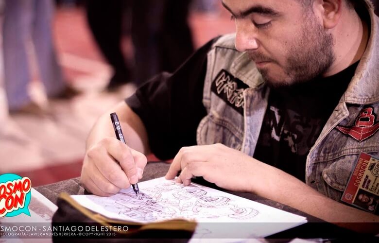 Rope:Bueno, es muy difícil poner una fecha en la que empecé a dibujar, la verdad ahora que lo pienso, dibujo desde que tengo uso de razón, o por lo menos eso recuerdo. Puedo decir que es una de las cosas que más me apasiona, más allá de la música y las motos, el dibujo es una forma, digamos, de expresarme más profundamente y mientras más complejos y grandes sean, mayor es la satisfacción que me genera. Desde un punto más personal, en mis obras me gusta mostrar la complejidad de las máquinas y su violencia. Siempre trato de mejorar y de publicar, he tenido algo de reconocimiento de la gente y ya llevo varios eventos de ilustración, comics y seminarios, lo que me motiva a seguir adelante. Igual, por los tiempos que se viven, no llego a dedicarle el tiempo que se merece, pero hago algún esfuerzo. No tengo un registro de mis trabajos… Solo  el progreso que voy subiendo a mi Facebook o en los eventos en los que suelo participar, pero lo que sí puedo afirmar es que estos últimos  3 años vengo especializándome con algunos cursos cortos, participando en charlas y seminarios dictados por artistas e ilustradores importantes, todos argentinos, en los que pude obtener críticas y conocimientos que me ayudan a mejorar las técnicas, fui bien aceptado por mis trabajos y llegué a participar en eventos junto a ellos, lo cual me aportó muchísima experiencia”.