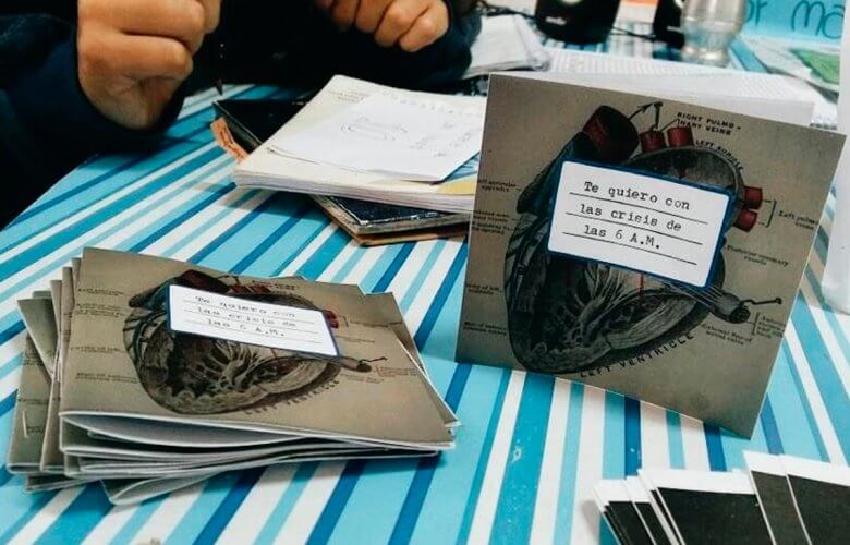 “Te quiero con las crisis de las 6 AM“ es un proyecto, si se quiere, artesanal y completamente autogestionado, dejando en claro que no existen barreras cuando uno está convencido de querer mostrar lo que hace y que siempre existen más de una forma de llevarlo a cabo. Así es como ella misma, con la ayuda de una amiga, se encargó de la impresión, armado, edición y venta de su propio micropoemario, contando con las ilustraciones de Hulpiano, artista de Ecuador.