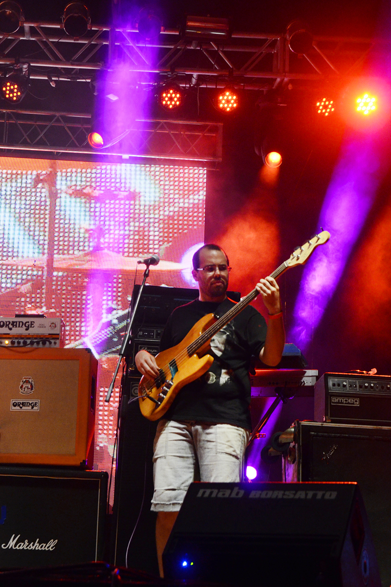 La música empezó a sonar con una puntualidad extraña para un recital de rock, por lo menos por estos lados, y los encargados de abrir la noche fueron los chicos de Bajo Perfil, en un escenario enorme digno de un festival de verano que se realizan en diferentes lugares turísticos. Esto incluye no sólo su tamaño sino la calidad de las luces, sonido, personal a disposición de los músicos y demás.