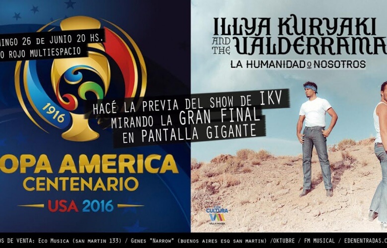 Se retrasará el horario previsto para el comienzo del show de Illya Kuryaki And The Valderramas junto a De La Rivera en Villa María por la Final de la Copa América Centenario donde nuestro país se enfrentará nuevamente con Chile.