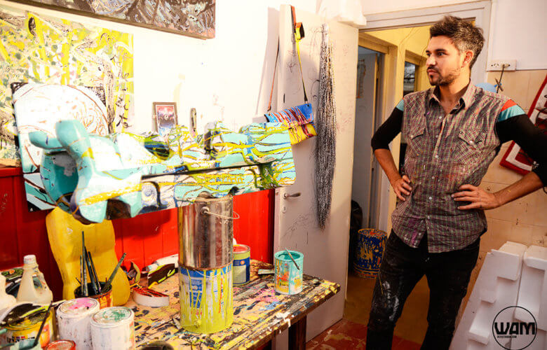 Es una instalación que presenta Fango Creativo y se llama happening el arte su-sede. Es la fusión de dos artistas: Andrés Gómez en fotografía y Milton Martínez en pintura.