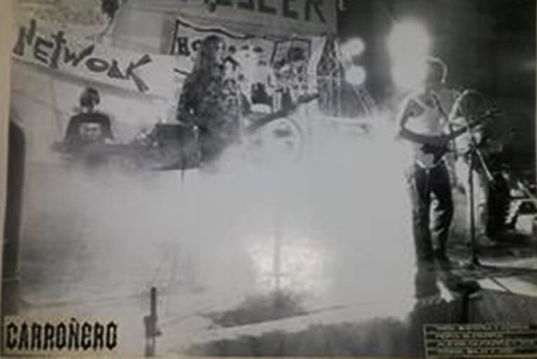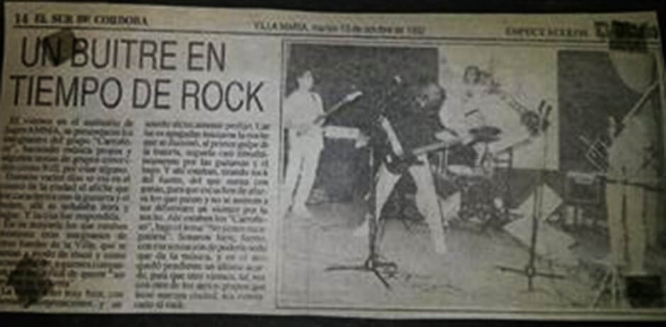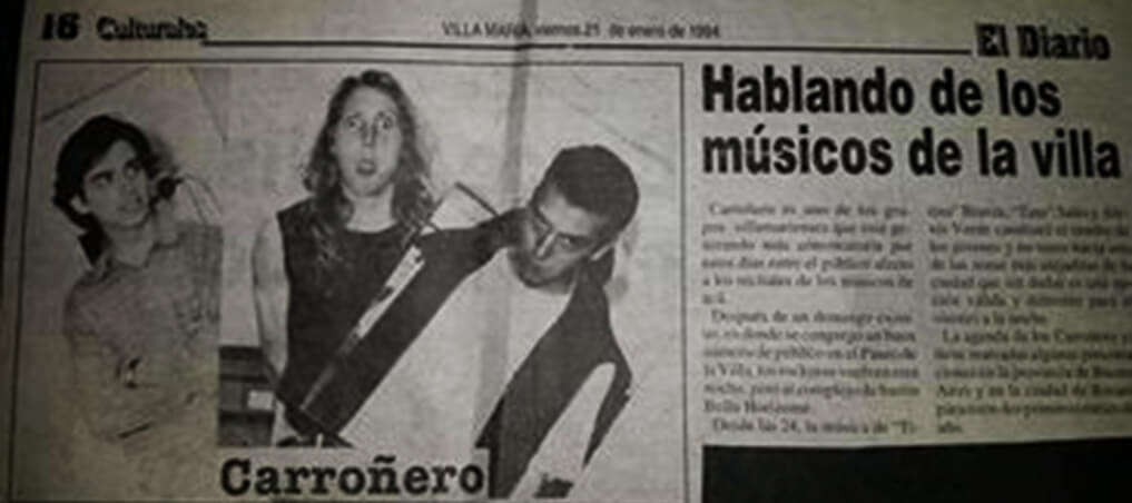 Después apareció “Carroñero”, con Pepo veníamos de tocar juntos y por otro lado Alexis Verde y Tato Salto. Nos juntamos los cuatro y salió una banda muy rockera, dura y talentosa. Hacíamos la diferencia con los violeros. Nadie tenía alguien que soleara bien y nosotros teníamos dos!! Muy buenas convocatorias, por primera vez tenía una banda con temas propios y donde logré aportar letras. También hacíamos muchos temas de Riff y Metallica. Hubo una última etapa como trío con Alexis Verde en guitarra, Pelado Gómez en batería y yo. Un paso breve pero muy interesante fue “La Borra”, con Pepo en la guitarra y Ariel Rubiolo en batería. Power trío muy exigente a nivel técnico”.