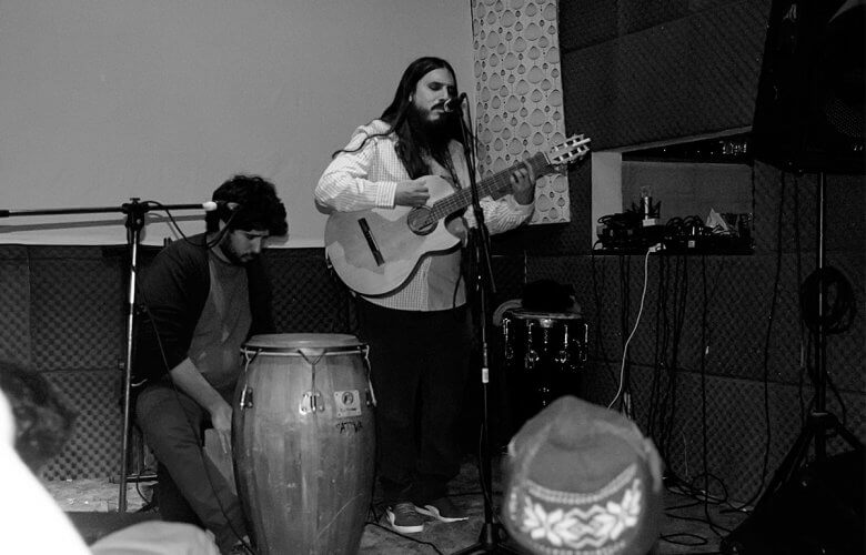 Juanito El Cantor se presentó en Polaroid House con todo su repertorio interpretado en formato dúo, junto a Nicolás Soares, integrante y compañero de La Nube Mágica. Antes, pasó por el escenario el cantante y músico de La Plata, Nico Piró, ambos se encargaron de volver cálida una noche de temperaturas muy bajas.