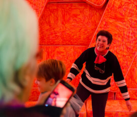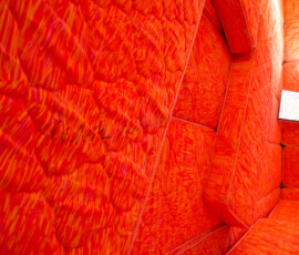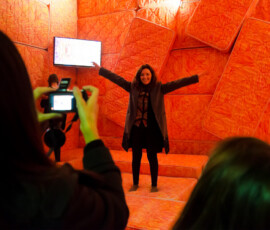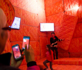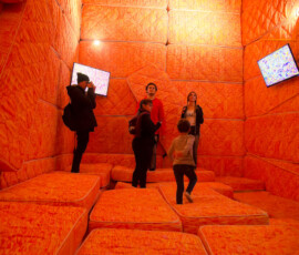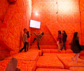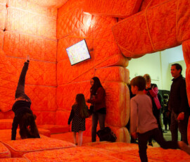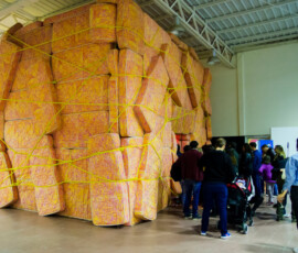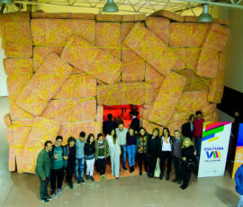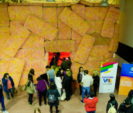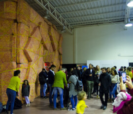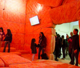 La Escuela de Bellas Artes “Emiliano Gomez Clara” de Villa María inauguró, ayer lunes 27 de agosto, la instalación de Marta Minujin “La Galería Blanda” en su Salón de Usos Múltiples. Una gran cantidad de personas se acercaron a vivir la obra, dejando la urbanidad de sus calzados en la entrada.