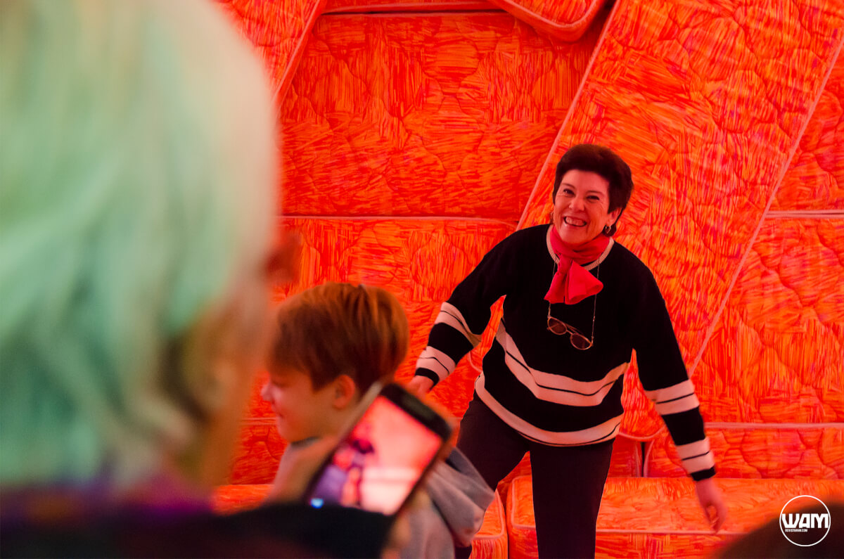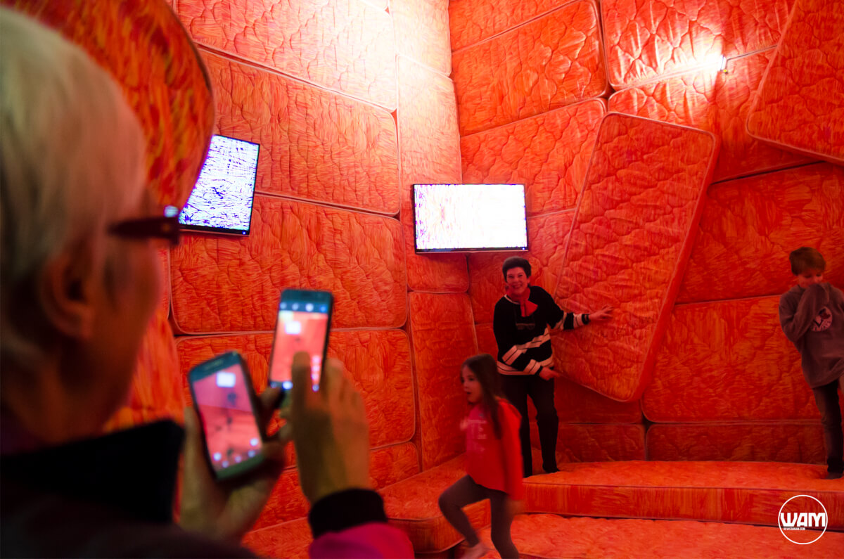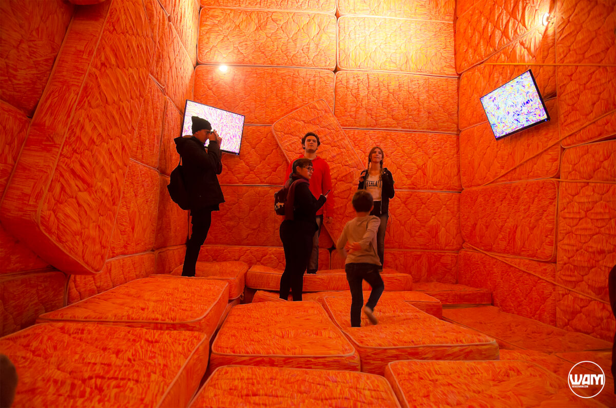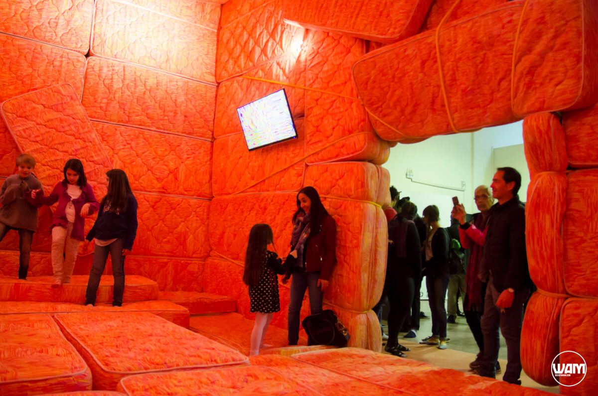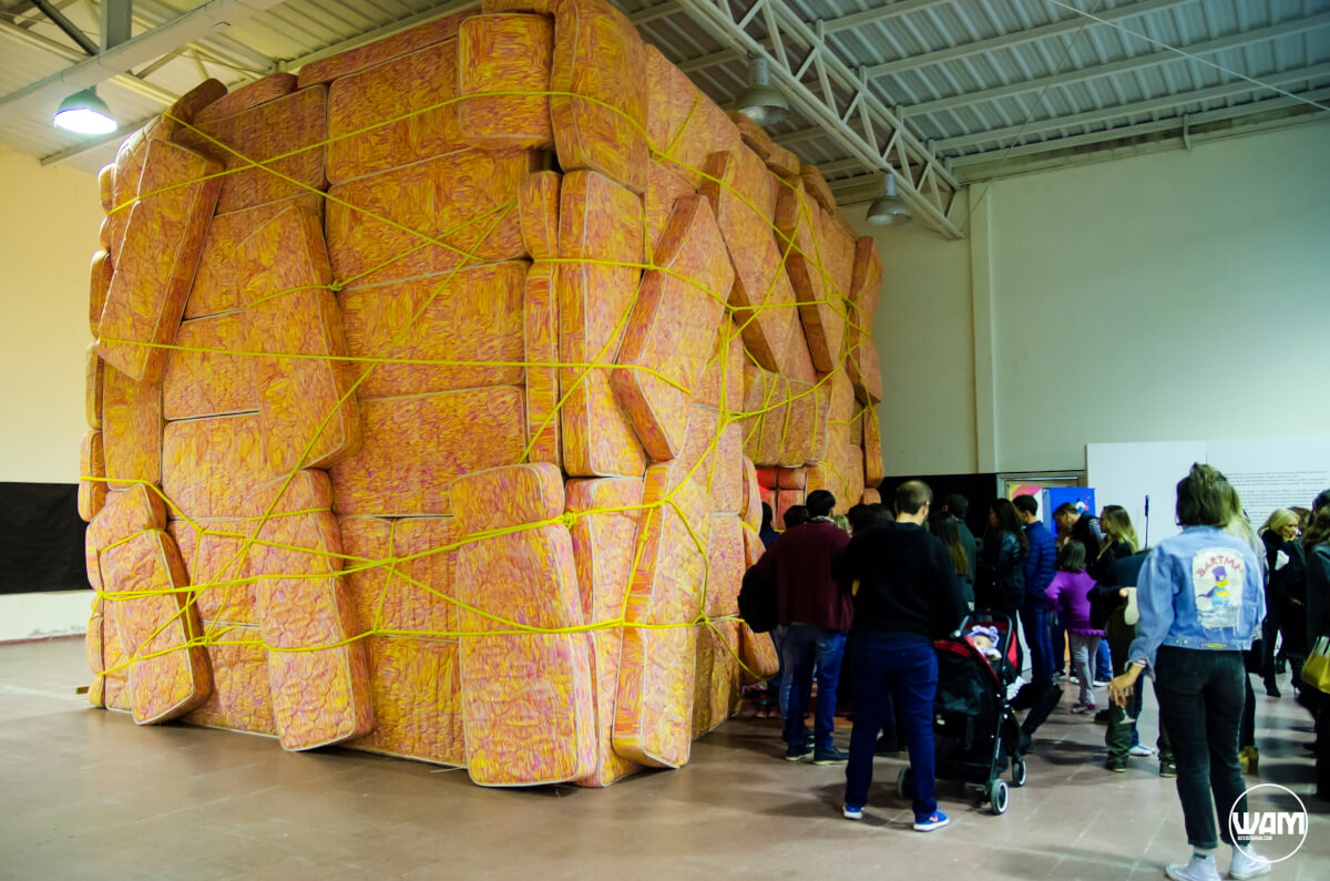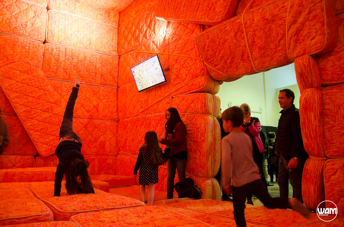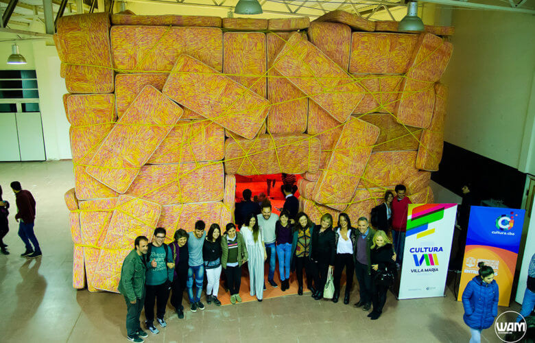 La Escuela de Bellas Artes “Emiliano Gomez Clara” de Villa María inauguró, ayer lunes 27 de agosto, la instalación de Marta MinujinLa Galería Blanda” en su Salón de Usos Múltiples. Una gran cantidad de personas se acercaron a vivir la obra, dejando la urbanidad de sus calzados en la entrada.