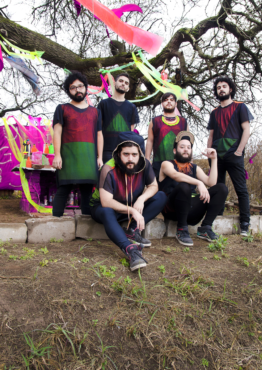 Pedro: Aparte de los seis músicos que somos en la banda, tenemos la suerte de contar con una séptima integrante que es Laura Livetti, quien es la encargada de nuestro vestuario, con ella trabajamos un poco lo visual y creemos que va de la mano con lo que hacemos, inspirados en la cultura chicha/amazónica.