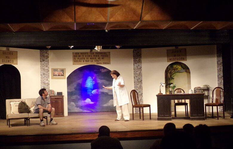 Una escenografía magistral. Tres puertas, invitaciones a diferentes mundos y momentos. La busqueda constante de la mejoría a pesar de sufir las cachetadas del destino. Eso es la vida, eso también es el teatro como representador de la comedia de la vida. El teatro lo hizo una vez más, es el motor impulsor que ayuda a sobrevivir a cada momento.
